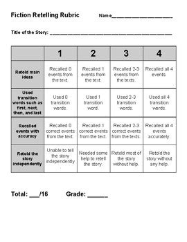 Read retelling rubric grade 3 Reader